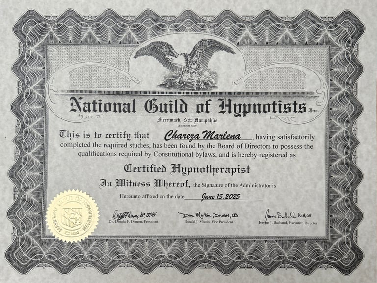 Certified Hypnotherapist - National Guild of Hypnotists (najstarsza i największa organizacja hipnozy na świecie)